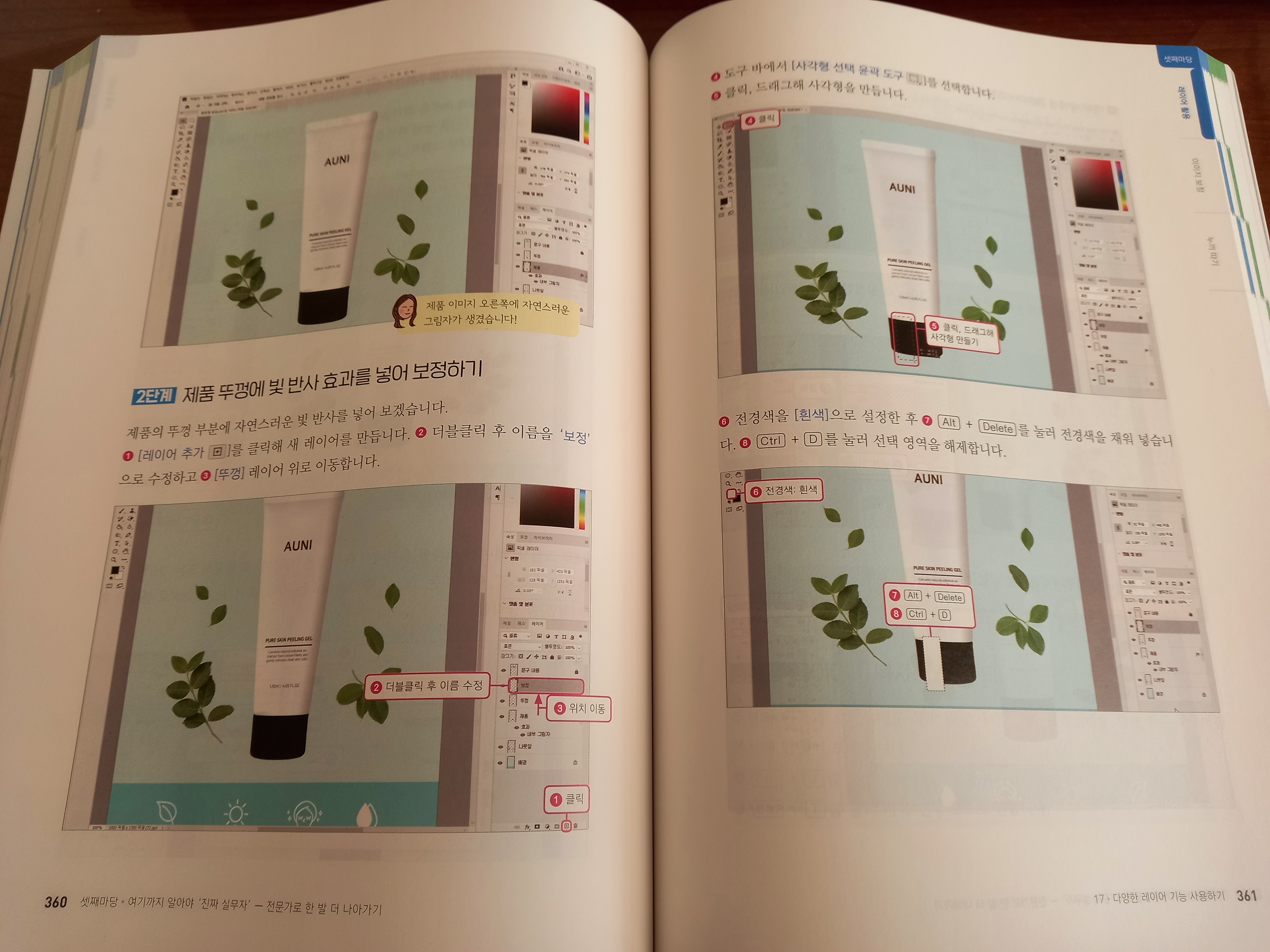 이 책의 장점은 다양한 실제 디자인 사례를 통해 포토샵을 학습할 수 있다는 점이다.