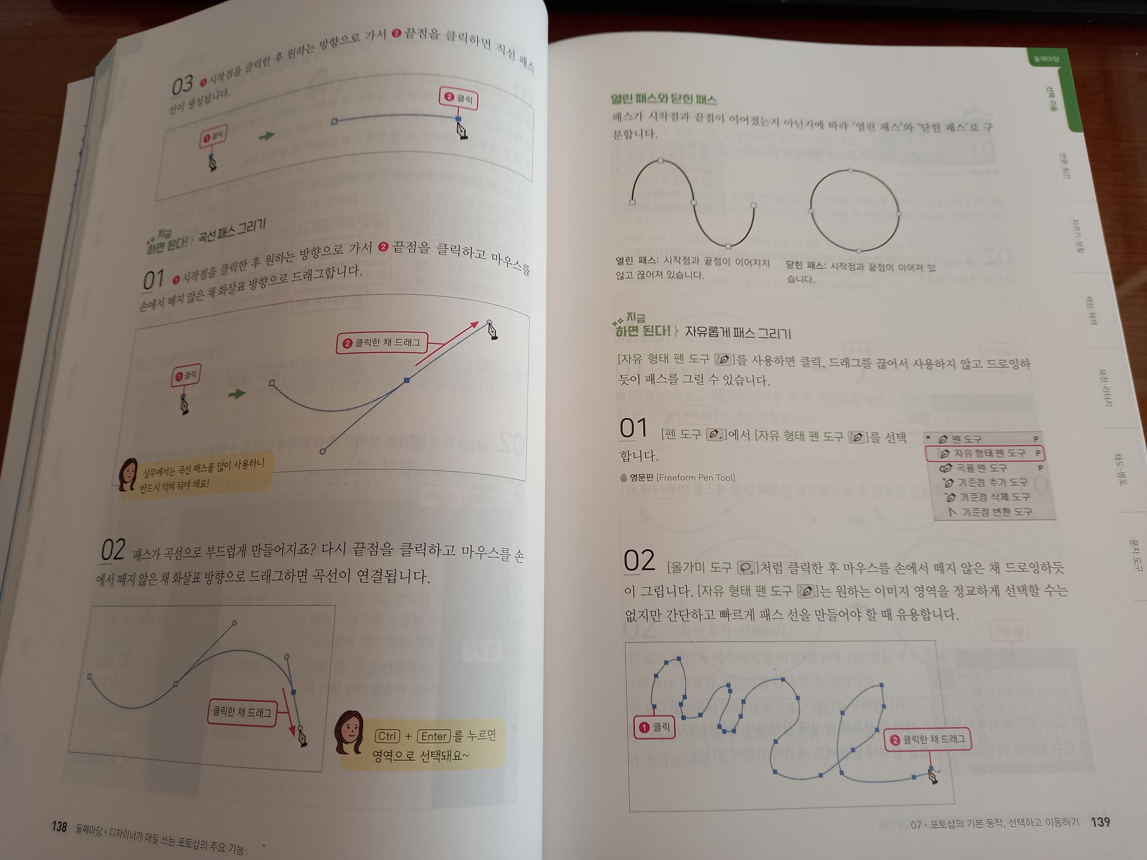 이 책의 분량은 맨 끝의 '찾아보기'까지 총 599 페이지로, 일반적인 포토샵 입문자용 서적에 비해 살짝 두꺼운 편인데, 그만큼 충실한 내용을 담고 있다.