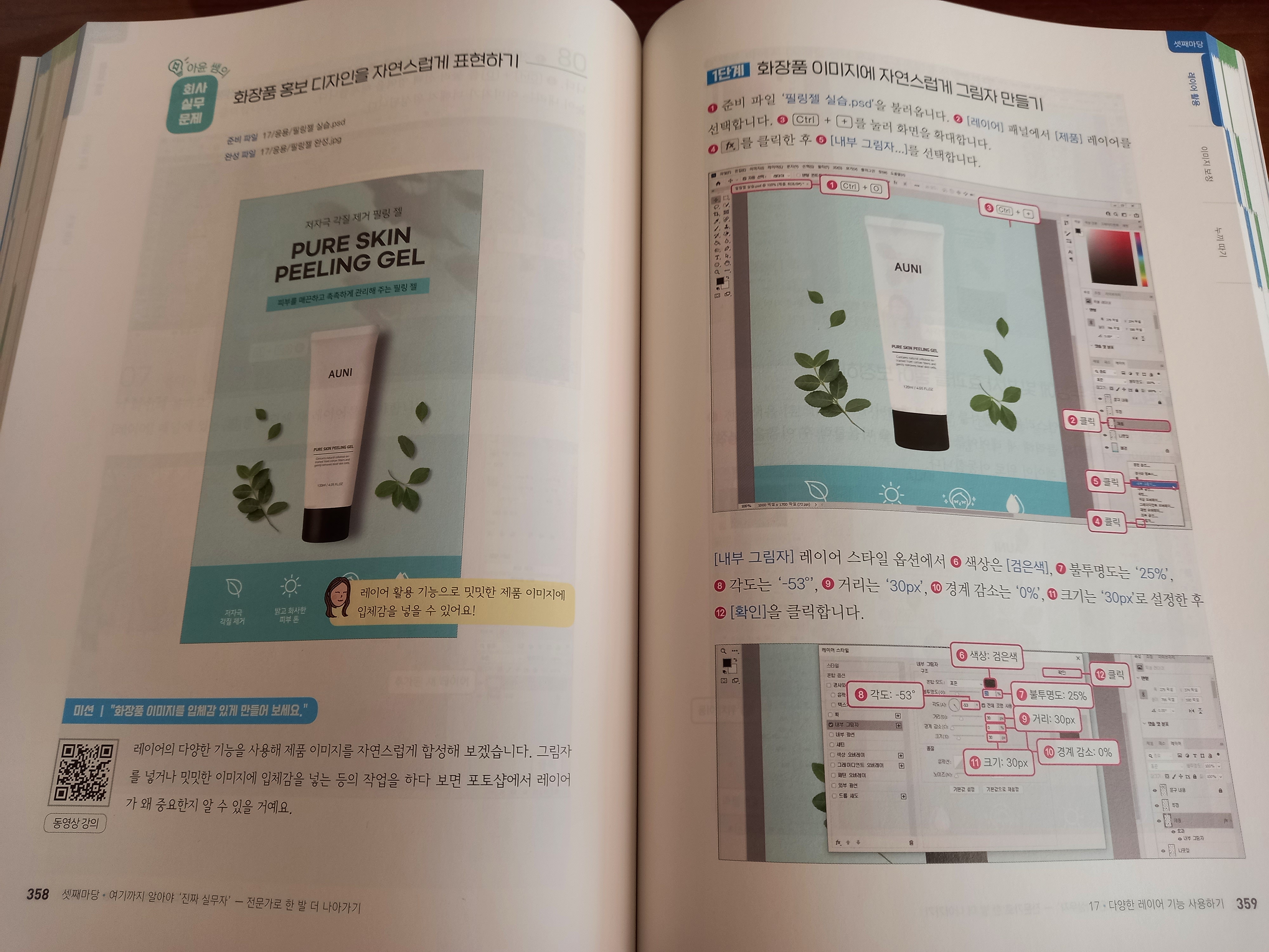 이 책의 장점은 다양한 실제 디자인 사례를 통해 포토샵을 학습할 수 있다는 점이다.