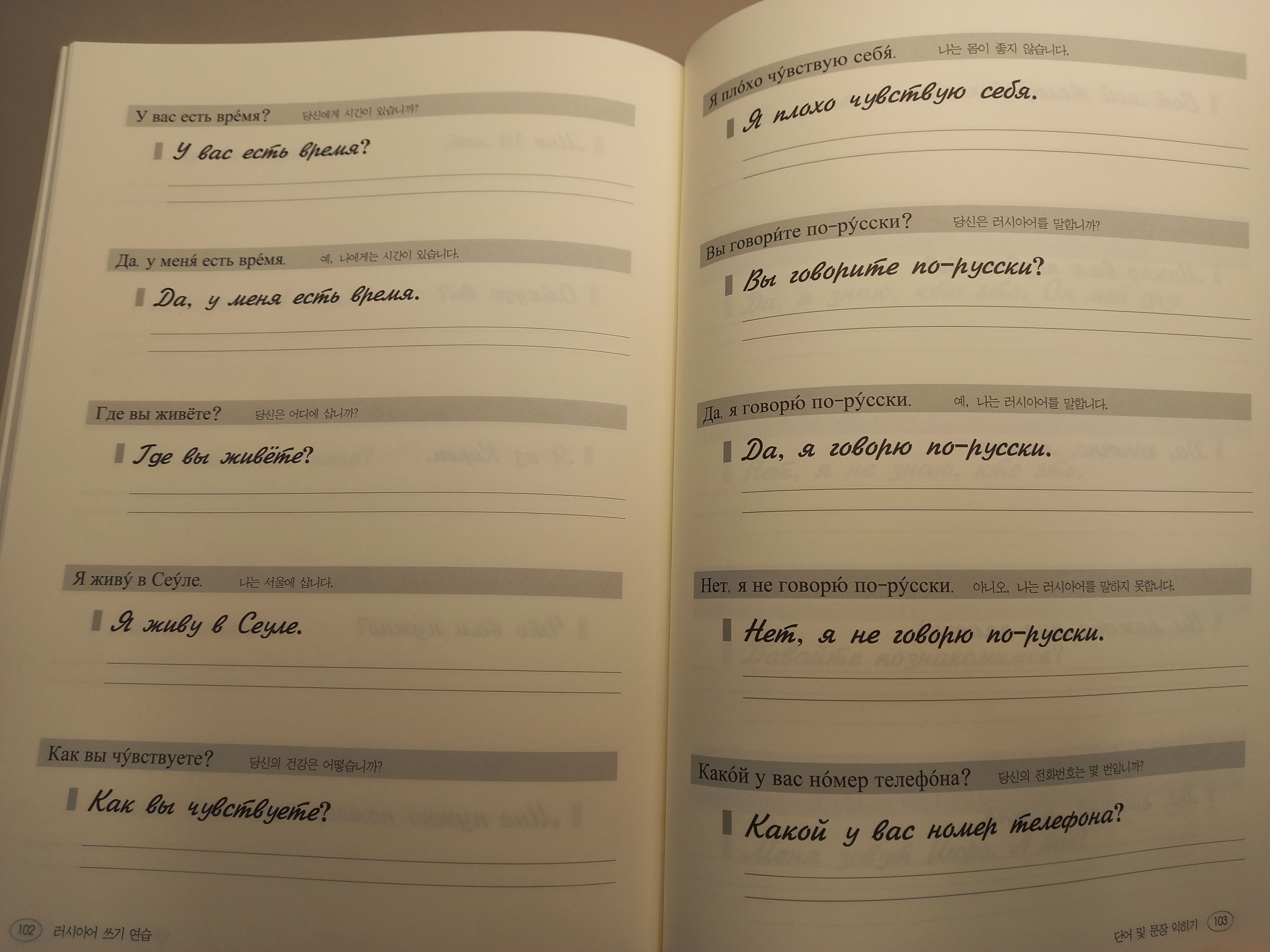 러시아어 끼릴 문자 자체가 한국인들에게 워낙 낯선 문자이므로, 이 책의 내용을 따로 복사해서 꾸준히 연습하는 것도 바람직할 것이다.