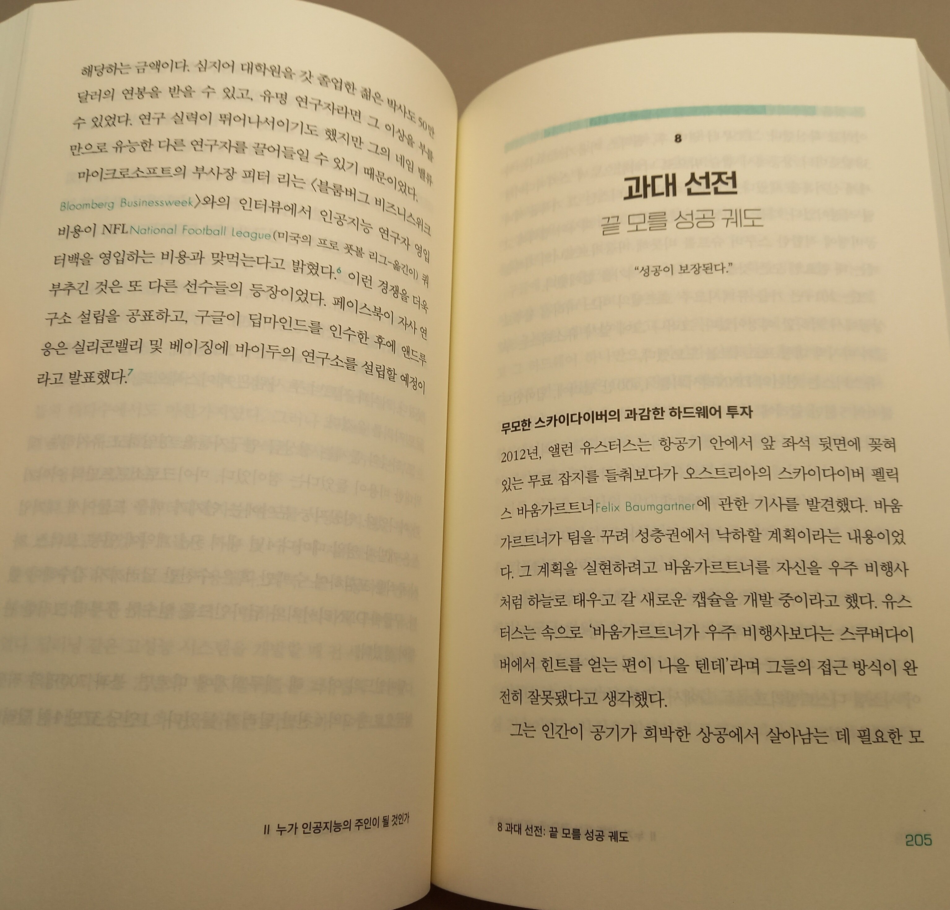 이 책은 또한 2000년대 이후 급격히 성장한 미국의 대형 기술기업, 이른바 빅 테크 기업들이 벌인 인공지능 경쟁도 흥미롭게 다루고 있다. 천재개발자로 불리는 제프 딘을 중심으로 구글이 인공지능 업계에서 어떻게 발전을 도모했는지 나오는데, 특히 영국 출신의 천재 데미스 하사비스가 설립한 '딥마인드(알파고를 개발한 기업)'가 구글에 어떻게 인수됐는지 생생하게 그려진다.